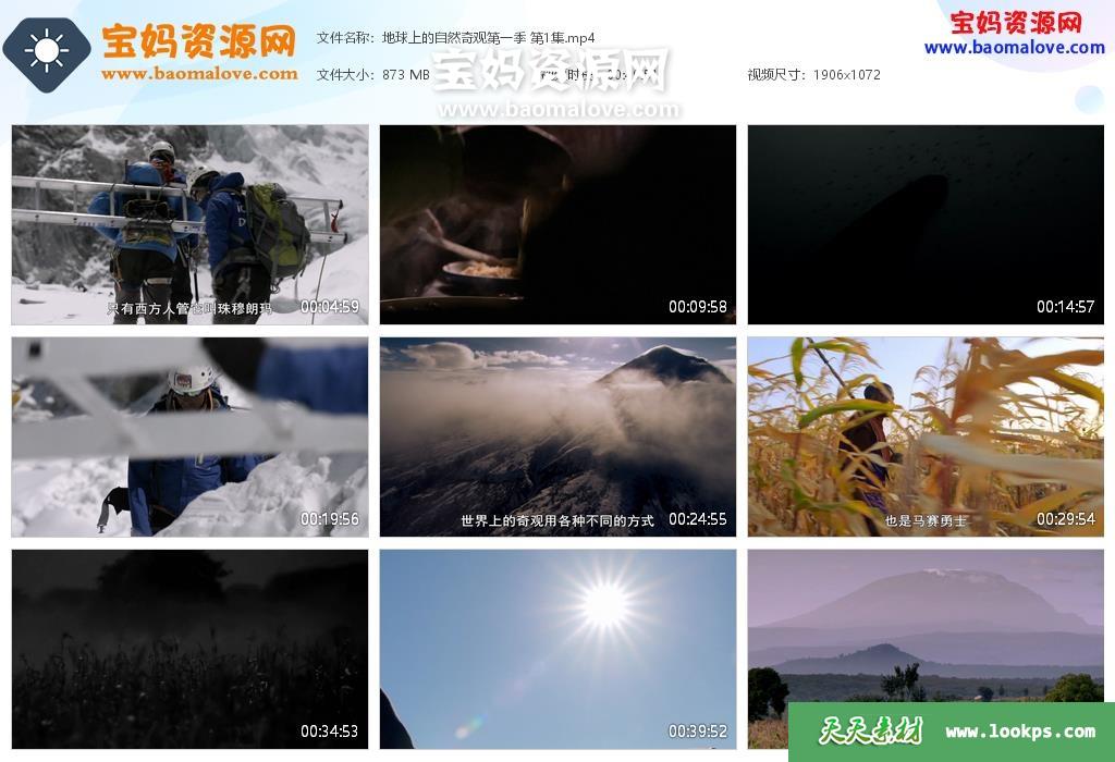 天天资源网收录的纪录片《奇迹之地 Earth’s Natural Wonders》第一季,全部3集,英语发音,中文字幕;资源总大小约3.16G,单集播放时长约50分钟,1080P高清MP4视频格式,可以在电视机或电脑、平板、IPAD、早教机、手机等各种设备播放,提供百度云网盘下载。