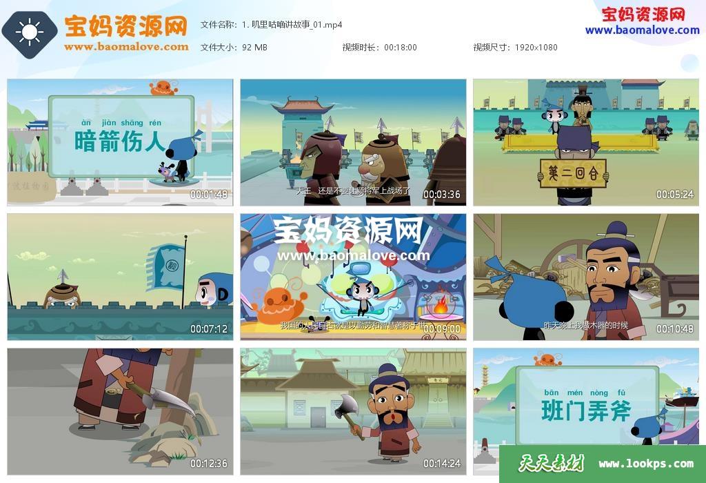 天天资源网收录的动画片《叽里咕噜讲故事》,全部50集,国语发音,中文字幕;资源总大小约4.6G,单集播放时长约18分钟,1080P高清MP4视频格式,可以在电视机或电脑、平板、IPAD、早教机、手机等各种设备播放,提供百度云网盘下载。