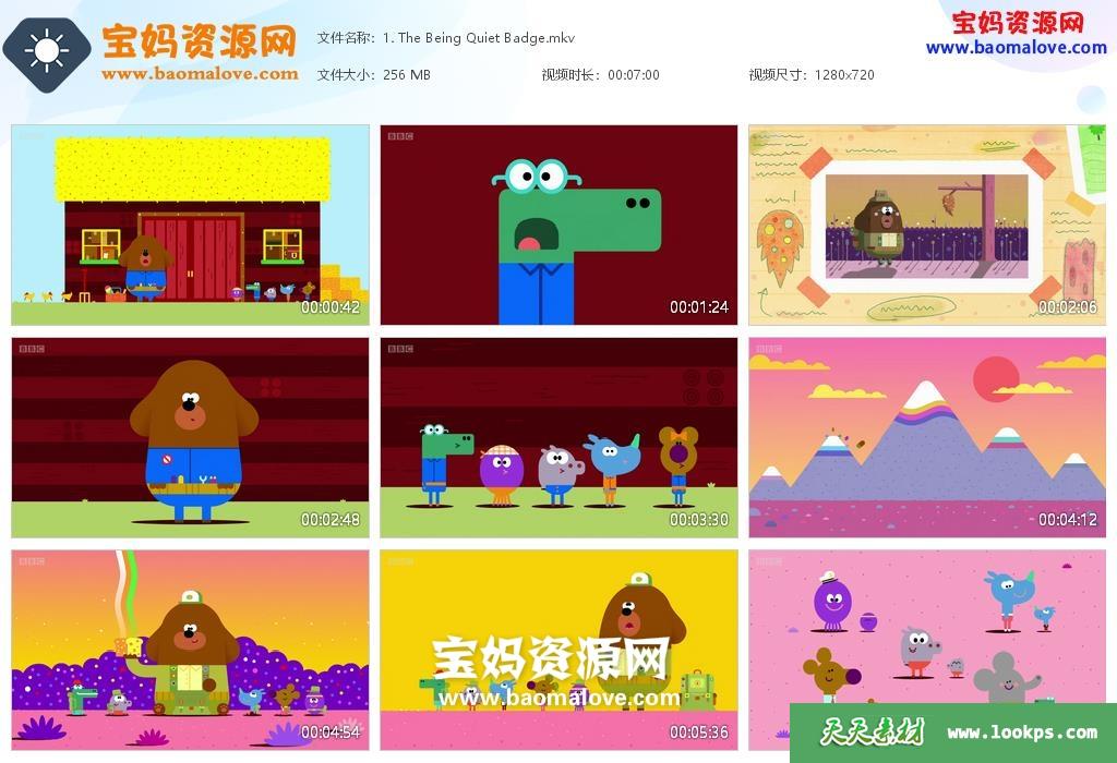 天天资源网收录的动画片《Hey Duggee》嗨 道奇英文版 第三季,全部52集,英语发音,内置英文字幕(可下载后使用播放器选择设置字幕或者关闭字幕);资源总大小6.61G,单集播放时长约7分钟,720P高清MKV视频格式,可以在电视机或电脑、平板、IPAD、早教机、手机等各种设备播放,提供百度云网盘下载。