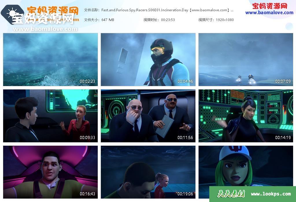 天天资源网收录的动画片《Fast & Furious:Spy Racers》速度与激情:特工飞车手英文版 第六季,全部12集,英语发音,内置英文字幕(内置多国语言字幕阿拉伯文,捷克文,丹麦文,德文,希腊文,西班牙文,芬兰文,法文,希伯来文,克罗地亚文,匈牙利文,印尼文,意大利文,韩文,马来文,挪威文,荷兰文,波兰文,葡萄牙文,罗马尼亚文,瑞典文,泰文,土耳其文,乌克兰文,越南文等,可下载后使用播放器选择设置字幕或者关闭字幕);每集大小约630M,资源总大小8.05G,单集播放时长约24分钟,1080P高清MKV格式,可以在电视机或电脑、平板、IPAD、早教机、手机等各种设备播放,提供百度云网盘下载。