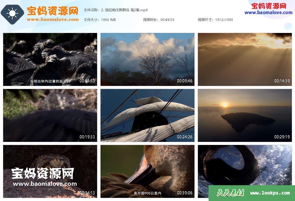 天天资源网收录的纪录片《加拉帕戈斯群岛 Galápagos》,全部3集,英语发音,中文字幕;资源总大小约3.17G,单集播放时长约48分钟,1080P高清MP4视频格式,可以在电视机或电脑、平板、IPAD、早教机、手机等各种设备播放,提供百度云网盘下载。