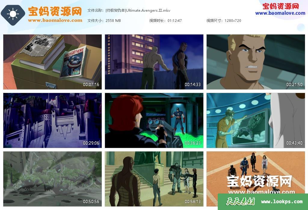天天资源网收录的动画电影《终极复仇者2:黑豹的崛起 Ultimate Avengers 2: Rise of the Panther》,国语/粤语/英语三语发音,内置中英文字幕(可以下载后使用播放器选择设置字幕或者关闭字幕);资源大小约2.49G,720P高清MKV视频格式,可以在电视机或电脑、平板、IPAD、早教机、手机等各种设备播放,提供百度云网盘下载。