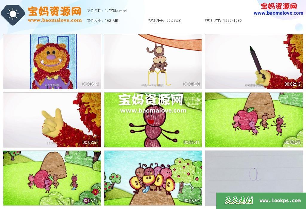 天天资源网收录的动画片《涂鸦宝宝学字母》,全部26集,国语发音,中文字幕;资源总大小约4.35G,单集播放时长约7分钟,1080P高清MP4视频格式,可以在电视机或电脑、平板、IPAD、早教机、手机等各种设备播放,提供百度云网盘下载。