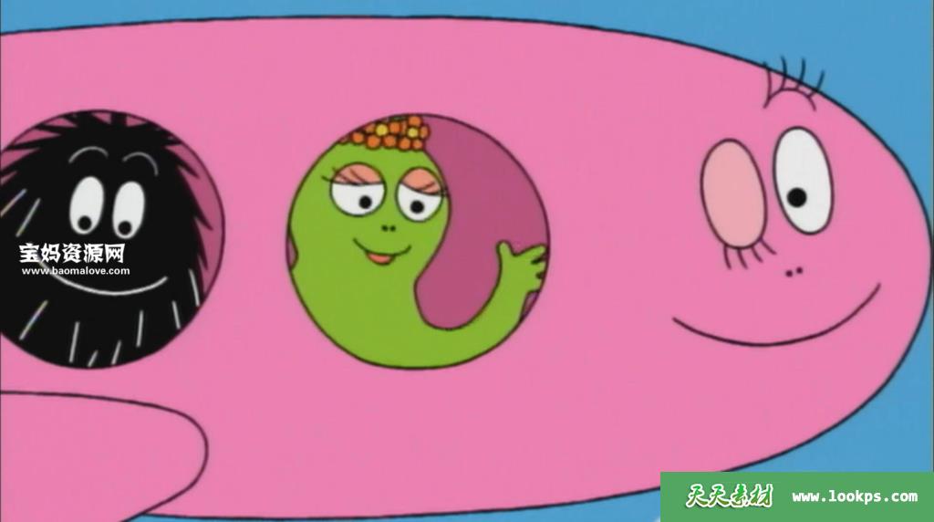 在辛迪和弗朗索瓦家的花园里,某天地下突然长出一个圆滚滚的粉红色小球,他越长越大,最后变成了一个椭圆形的小巨人,孩子们给他起名叫巴巴爸爸。大个子给他带来了不少麻烦:人们禁止它上公共汽车,电影院还有餐厅……不过他的善良帮他解决了一个又一个的难题。他还有一种超长的本领,就是可以随心所欲地变形!克里克里巴巴变 !想变啥就变啥!不久巴巴爸爸就遇到了,通体黑色,美丽动人的巴巴妈妈,他们生下了七个可爱的宝宝:巴巴祖,巴巴拉拉,巴巴伯,巴巴布莱伯,巴巴利波,巴巴布莱特,巴巴贝尔。一家人与人类和谐相处,过着快乐而充满惊奇的生活。