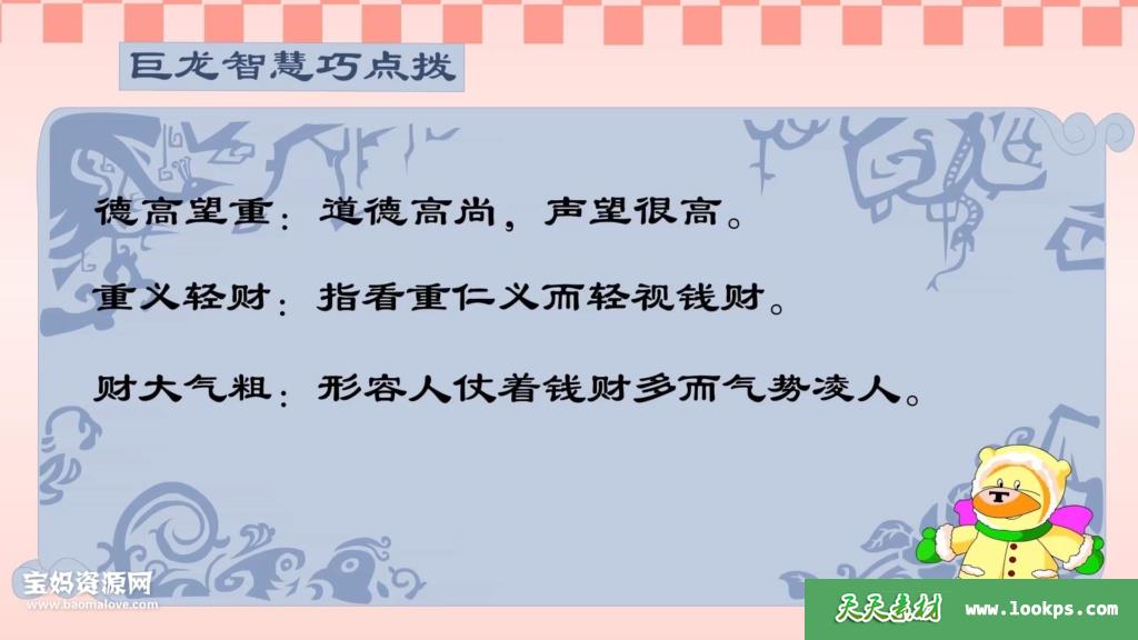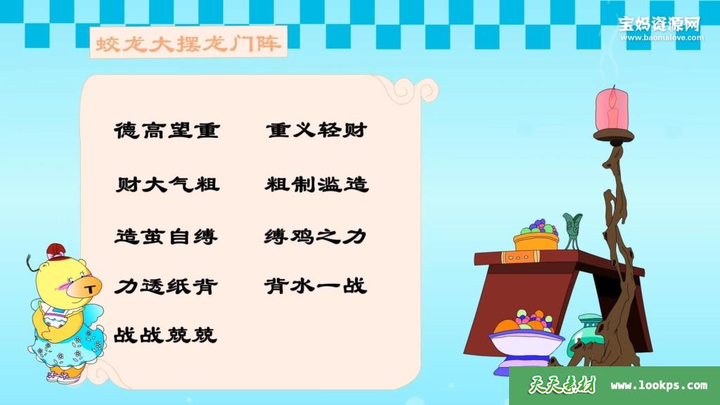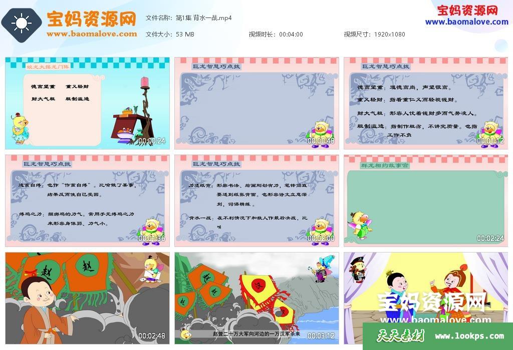 天天资源网收录的动画片《小笨熊之成语接龙》,全部29集,国语发音,中文字幕;资源总大小约957M,单集播放时长约3~4分钟,1080P高清MP4视频格式,可以在电视机或电脑、平板、IPAD、早教机、手机等各种设备播放,提供百度云网盘下载。