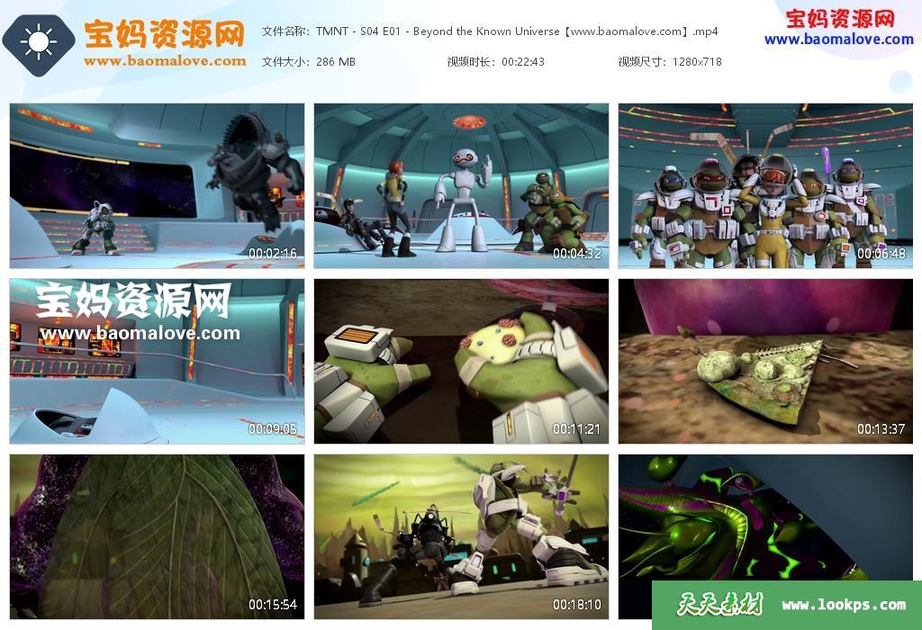 天天资源网收录的动画片《Teenage Mutant Ninja Turtles》忍者神龟英文版 第四季,全部26集,英语发音,外挂英文字幕;资源总大小5.99G,单集播放时长约23分钟,720P高清MP4视频格式,可以在电视机或电脑、平板、IPAD、早教机、手机等各种设备播放,提供百度云网盘下载。