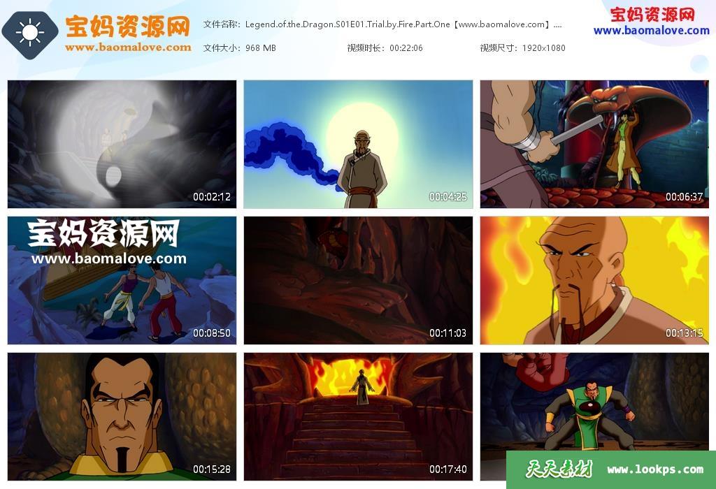 天天资源网收录的动画片《Legend of the Dragon》龙的传说英文版 第一季,全部26集,英语发音,内置英文字幕(可以下载后使用播放器选择设置字幕或者关闭字幕);资源总大小20.5G,单集播放时长约22分钟,1080P高清MKV视频格式,可以在电视机或电脑、平板、IPAD、早教机、手机等各种设备播放,提供百度云网盘下载。