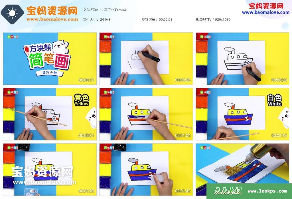 天天资源网收录的动画片《方块熊简笔画》,全部46集,国语发音,中文字幕;资源总大小约960M,单集播放时长约2分钟,1080P高清MP4视频格式,可以在电视机或电脑、平板、IPAD、早教机、手机等各种设备播放,提供百度云网盘下载。