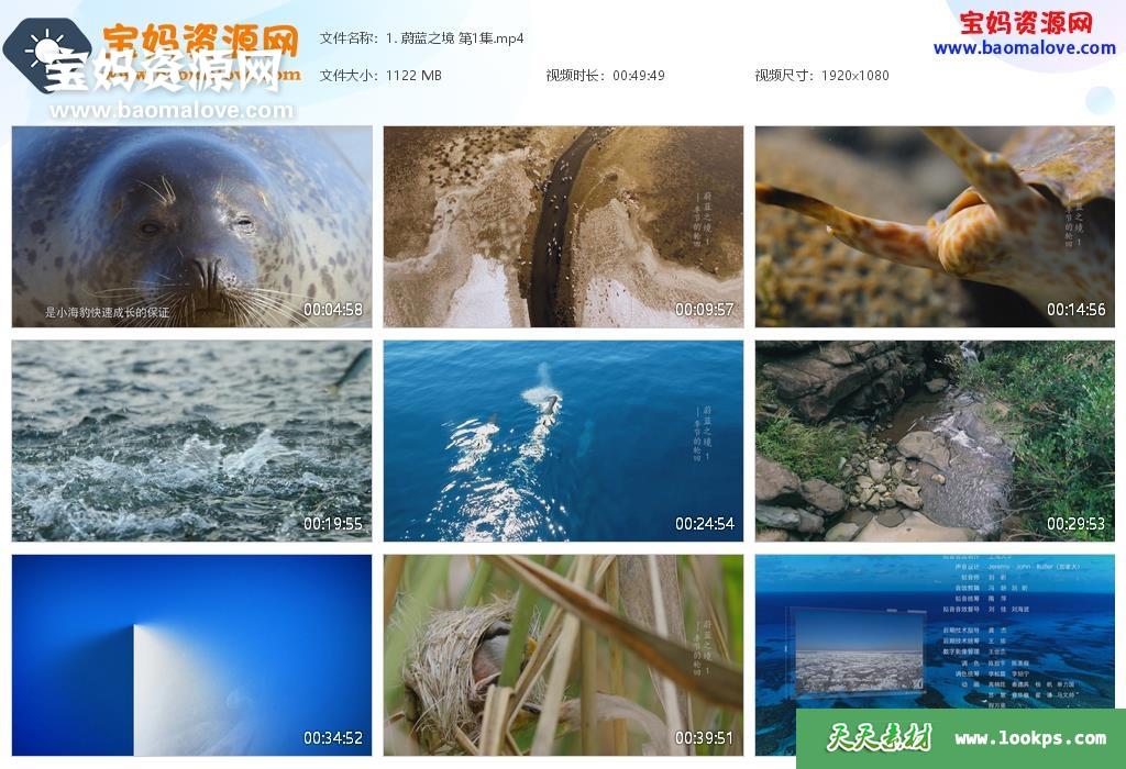 天天资源网收录的纪录片《蔚蓝之境》,全部6集,国语发音,中文字幕;资源总大小约6.95G,单集播放时长约50分钟,1080P高清MP4视频格式,可以在电视机或电脑、平板、IPAD、早教机、手机等各种设备播放,提供百度云网盘下载。