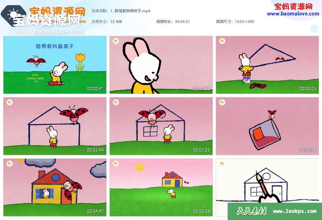 天天资源网收录的动画片《路易小兔子》Louie中文版 第一季,全部18集,国语发音,无字幕;资源总大小约803M,单集播放时长约7分钟,1080P高清MP4视频格式,可以在电视机或电脑、平板、IPAD、早教机、手机等各种设备播放,提供百度云网盘下载。