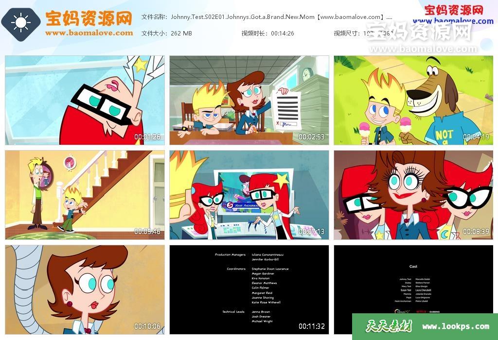 天天资源网收录的动画片《Johnny Test》实验小达人强尼英文版 第二季,全部20集,英语发音,内置英文字幕(内置多国语言字幕,简体中文,繁体中文,阿拉伯文,捷克文,丹麦文,德文,希腊文,西班牙文,芬兰文,法文,希伯来文,克罗地亚文,匈牙利文,印度尼西亚文,意大利文,日文,韩文,马来文,葡萄牙文,俄文,瑞典文,土耳其文,乌克兰文,越南文等,可以下载后使用播放器选择设置字幕或者关闭字幕);每集大小约300M,资源总大小6.05G,单集播放时长约14分钟,1080P高清MKV视频格式,可以在电视机或电脑、平板、IPAD、早教机、手机等各种设备播放,提供百度网盘下载。