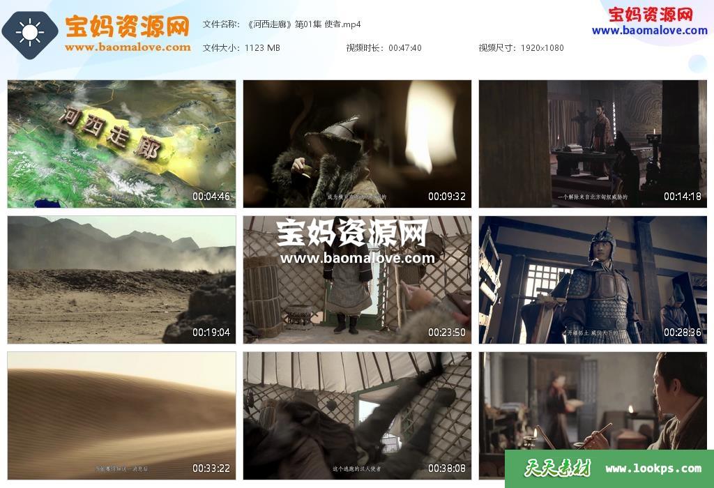 天天资源网收录的纪录片《河西走廊》,全部10集,国语发音,中文字幕;资源总大小约10.8G,单集播放时长约48分钟,1080P高清MP4视频格式,可以在电视机或电脑、平板、IPAD、早教机、手机等各种设备播放,提供百度云网盘下载。