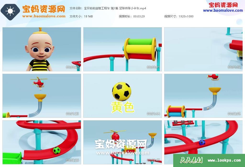天天资源网收录的动画片《宝贝佑佑益智工程车》,全部30集,国语发音,中文字幕;资源总大小约630M,单集播放时长约3分钟,1080P高清MP4视频格式,可以在电视机或电脑、平板、IPAD、早教机、手机等各种设备播放,提供百度云网盘下载。