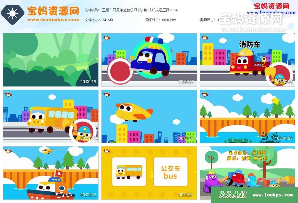 天天资源网收录的动画片《工程车四兄弟益智乐园》,全部39集,国语发音,中文字幕;资源总大小约1.35G,单集播放时长约3分钟,1080P高清MP4视频格式,可以在电视机或电脑、平板、IPAD、早教机、手机等各种设备播放,提供百度云网盘下载。