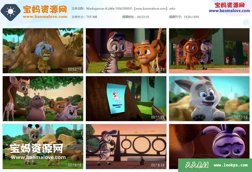 天天资源网收录的动画片《Madagascar: A Little Wild》马达加斯加:小小狂野英文版 第六季,全部6集,英语发音,内置英文字幕(可以下载后使用播放器选择设置字幕或者关闭字幕);每集大小665M,资源总大小3.97G,单集播放时长约23分钟,1080P高清MKV视频格式,可以在电视机或电脑、平板、IPAD、早教机、手机等各种设备播放,提供百度云网盘下载。