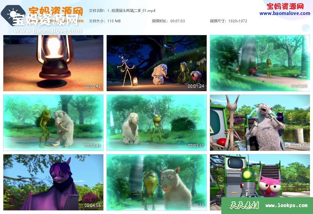 天天资源网收录的动画片《捣蛋猫头鹰》The Owl & Co中文版 第二季,全部78集,国语发音,无字幕;资源总大小6.83G,单集播放时长约7分钟,1080P高清MP4视频格式,可以在电视机或电脑、平板、IPAD、早教机、手机等各种设备播放,提供百度云网盘下载。