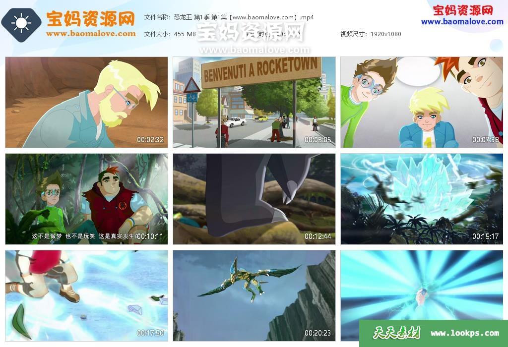 天天资源网收录的动画片《Dinofroz》恐龙王英文版 第一季,全部26集,英语发音,中文字幕;资源总大小10G,单集播放时长约25分钟,1080P高清MP4视频格式,可以在电视机或电脑、平板、IPAD、早教机、手机等各种设备播放,提供百度云网盘下载。