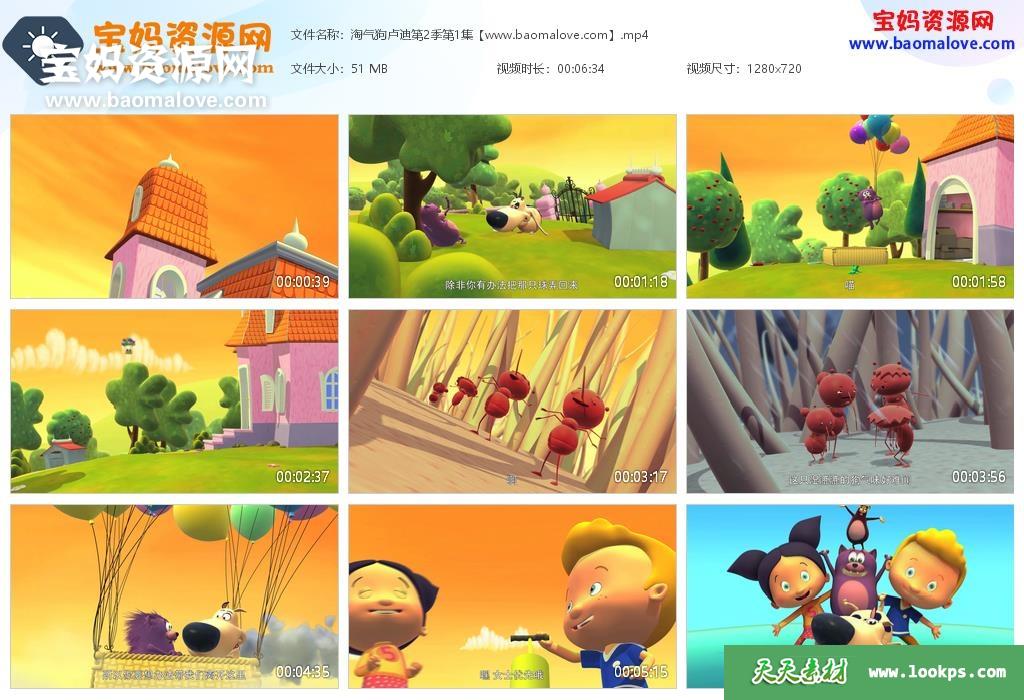 天天资源网收录的动画片《淘气狗卢迪》LooPdidoo中文版 第二季,全部52集,国语发音,中文字幕;资源总大小约2.62G,单集播放时长约6分钟,720P高清MP4视频格式,可以在电视机或电脑、平板、IPAD、早教机、手机等各种设备播放,提供百度云网盘下载。