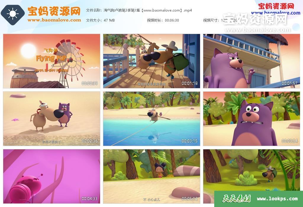 天天资源网收录的动画片《淘气狗卢迪》LooPdidoo中文版 第三季,全部52集,国语发音,中文字幕;资源总大小约2.42G,单集播放时长约6分钟,720P高清MP4视频格式,可以在电视机或电脑、平板、IPAD、早教机、手机等各种设备播放,提供百度云网盘下载。