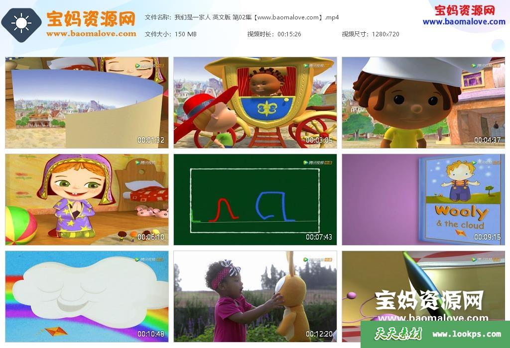天天资源网收录的动画片《We are Family》我们是一家人英文版,全部50集,英语发音,无字幕;资源总大小7.2G,单集播放时长约15分钟,720P高清MP4视频格式,可以在电视机或电脑、平板、IPAD、早教机、手机等各种设备播放,提供百度云网盘下载。