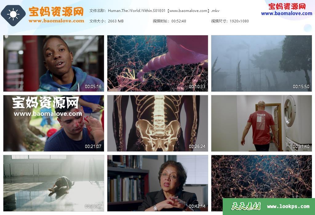 天天资源网收录的纪录片《人类:体内的世界 Human: The World Within》,全部6集,英语发音,内置英文字幕(内置多国语言字幕如:简体中文,繁体中文,阿拉伯文,捷克文,丹麦文,德文,希腊文,西班牙文,芬兰文,法文,希伯来文,克罗地亚文,匈牙利文,印度尼西亚文,意大利文,日文,韩文,马来文,荷兰文,波兰文,葡萄牙文,罗马尼亚文,瑞典文,泰文,土耳其文,乌克兰文,越南文等多国语言字幕…可以下载后使用播放器选择字幕或者关闭字幕);资源总大小15.09G,单集播放时长约53分钟,1080P高清MKV视频格式,可以在电视机或电脑、平板、IPAD、早教机、手机等各种设备播放,提供百度云网盘下载。