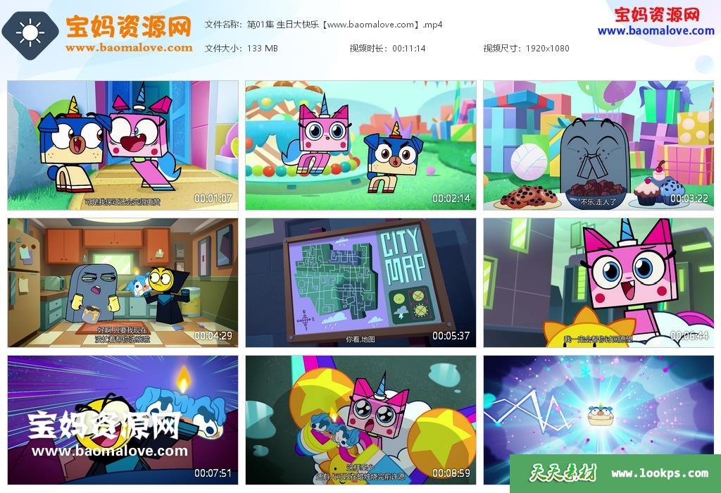 天天资源网收录的动画片《Unikitty!》独角猫英文版,全部40集,英语发音,中文字幕;资源总大小4.89G,单集播放时长约11分钟,1080P高清MP4视频格式,可以在电视机或电脑、平板、IPAD、早教机、手机等各种设备播放,提供百度云网盘下载。
