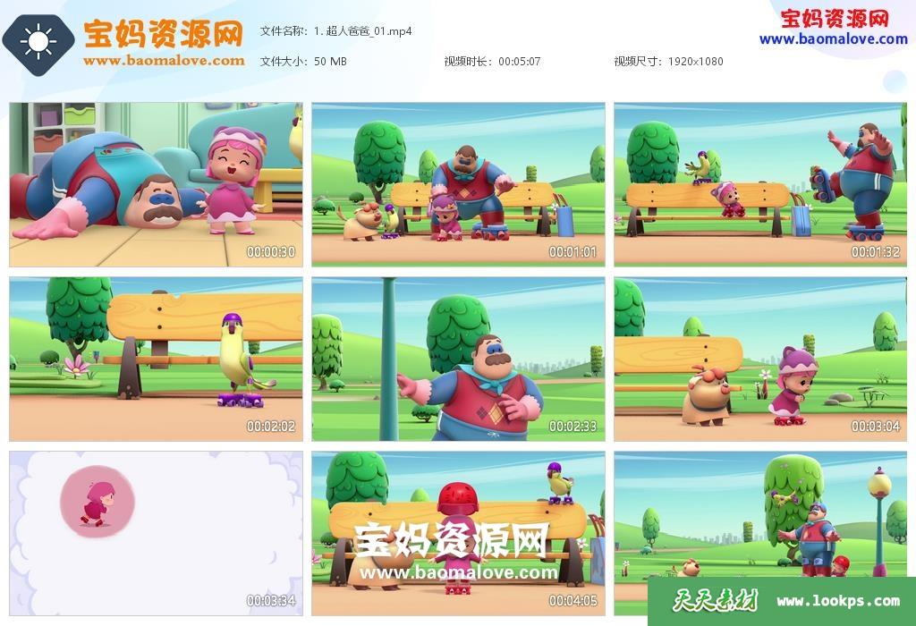 天天资源网收录的动画片《超人爸爸 Hero Dad》,全部26集,无对白,无字幕;资源总大小约1.04G,单集播放时长约5分钟,1080P高清MP4视频格式,可以在电视机或电脑、平板、IPAD、早教机、手机等各种设备播放,提供百度云网盘下载。
