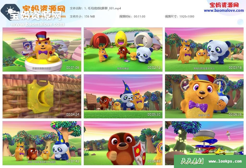 天天资源网收录的动画片《毛毛绒绒和胖胖》Ruff-Ruff Tweet and Dave中文版,全部104集,国语发音,中文字幕;资源总大小14.1G,单集播放时长约11分钟,1080P高清MP4视频格式,可以在电视机或电脑、平板、IPAD、早教机、手机等各种设备播放,提供百度云网盘下载。
