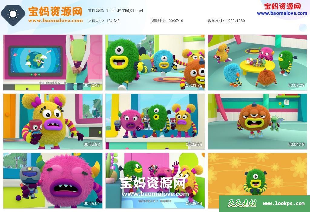 天天资源网收录的动画片《毛毛怪学院》,全部52集,国语发音,中文字幕;资源总大小6.12G,单集播放时长约7分钟,1080P高清MP4视频格式,可以在电视机或电脑、平板、IPAD、早教机、手机等各种设备播放,提供百度云网盘下载。