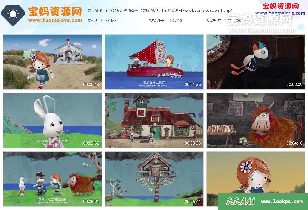 天天资源网收录的动画片《Lily’s Driftwood Bay》莉莉的梦幻湾英文版 第二季,全部52集,英语发音,中英文字幕;资源总大小3.96G,单集播放时长约7分钟,720P高清MP4视频格式,可以在电视机或电脑、平板、IPAD、早教机、手机等各种设备播放,提供百度云网盘下载。