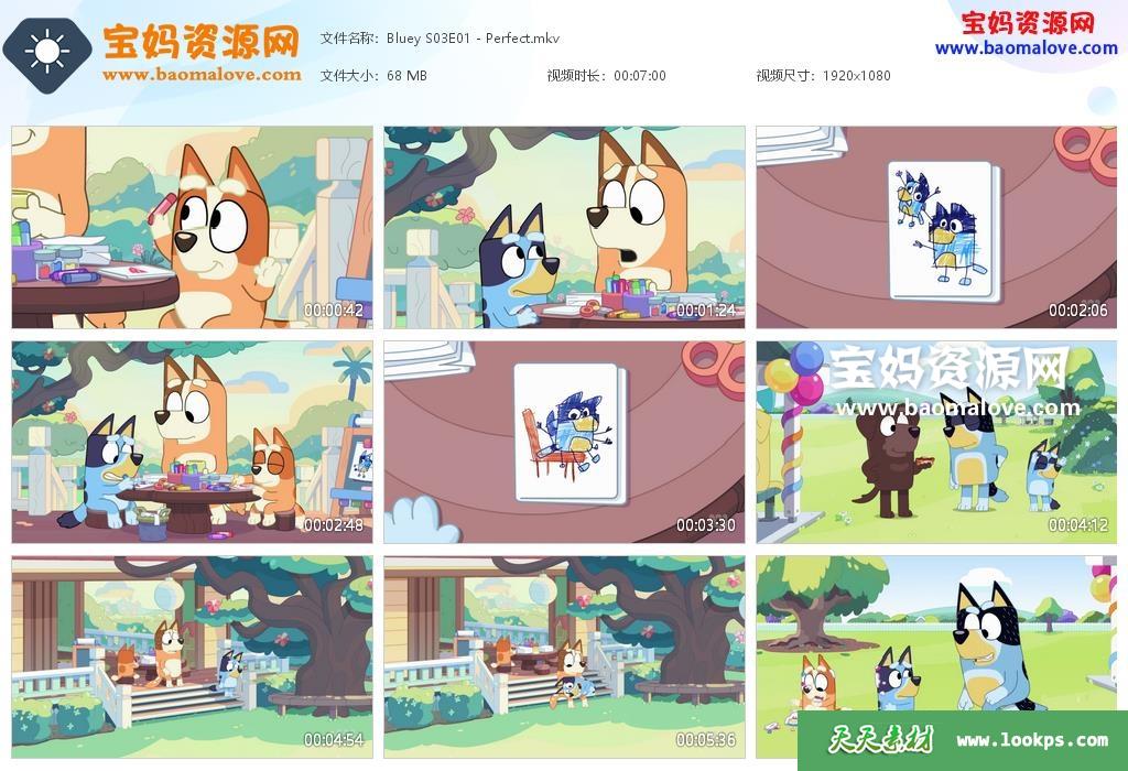 天天资源网收录的动画片《Bluey》布鲁伊英文版 第三季,全部26集,英语发音,内置中英文字幕;资源总大小2.24G,单集播放时长约7分钟,1080P高清MKV视频格式,可以在电视机或电脑、平板、IPAD、早教机、手机等各种设备播放,提供百度云网盘下载。