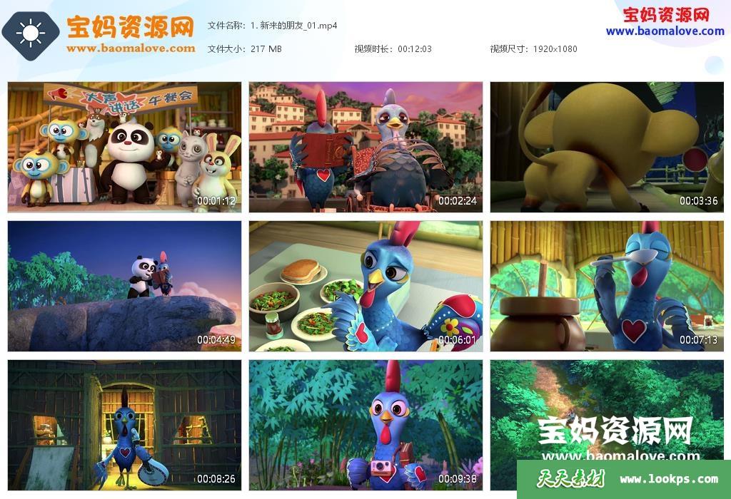 天天资源网收录的动画片《熊猫和卢塔》,全部52集,国语发音,无字幕;资源总大小10.3G,单集播放时长约12分钟,1080P高清MP4视频格式,可以在电视机或电脑、平板、IPAD、早教机、手机等各种设备播放,提供百度云网盘下载。