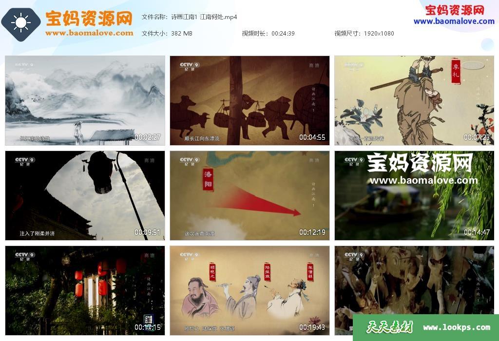 天天资源网收录的纪录片《诗画江南》,全部8集,国语发音,中文字幕;资源总大小约3.13G,单集播放时长约25分钟,1080P高清MP4视频格式,可以在电视机或电脑、平板、IPAD、早教机、手机等各种智能设备播放,提供百度云网盘下载。