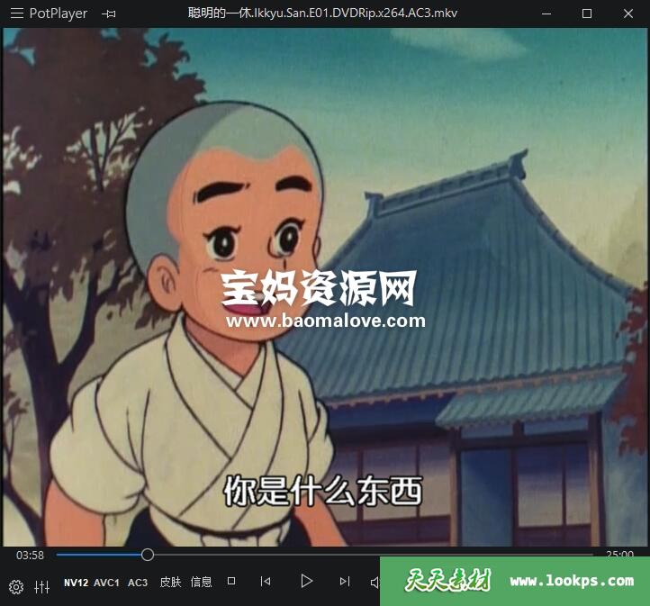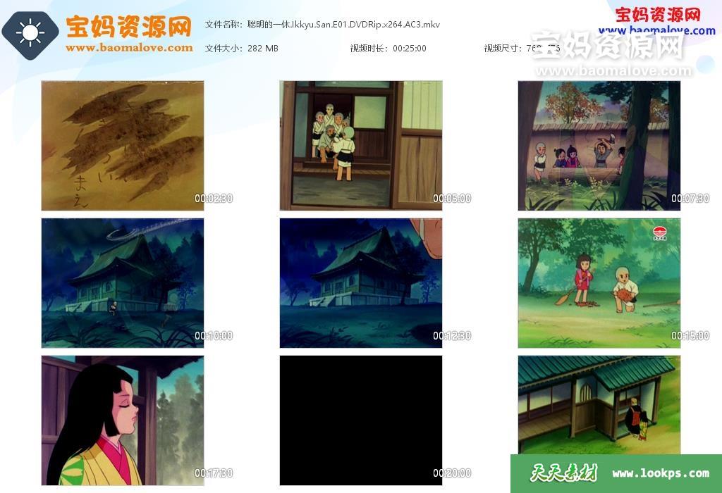 天天资源网收录的动画片《聪明的一休 天艺版》,全部150集,国日双语发音,内置中文字幕(可以下载后使用播放器选择设置字幕或者关闭字幕);资源总大小约50.8G,单集播放时长约25分钟,576P标清MKV视频格式,可以在电视机或电脑、平板、IPAD、早教机、手机等各种智能设备播放,提供百度云网盘下载。
