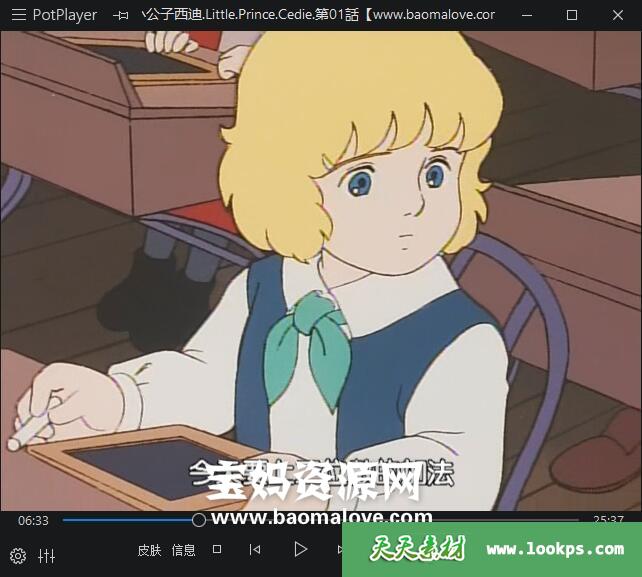 天天资源网收录的动画片《小公子西迪》,全部43集,国日双语发音,内置中文字幕(可以下载后使用播放器选择设置字幕或者关闭字幕);资源总大小约13.1G,单集播放时长约24分钟,480P标清MKV视频格式,可以在电视机或电脑、平板、IPAD、早教机、手机等各种智能设备播放,提供百度云网盘下载。