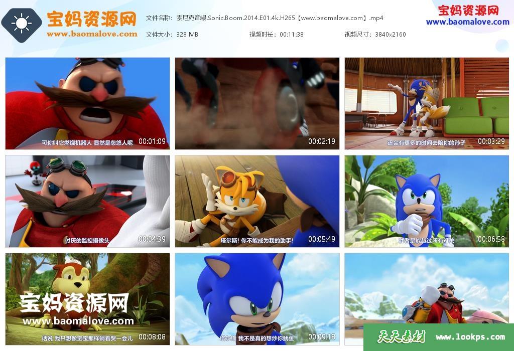 天天资源网收录的动画片《索尼克音爆》Sonic Boom中文版 第一季,全部52集,国语发音,中文字幕;H265视频编码,资源总大小约15G,单集播放时长约12分钟,4K高清MP4视频格式,可以在电视机或电脑、平板、IPAD、早教机、手机等各种智能设备播放,提供百度云网盘下载。