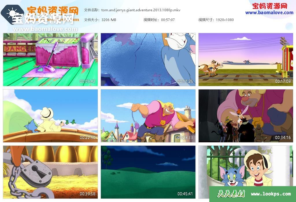 天天资源网收录的动画电影《猫和老鼠之巨人大冒险 Tom and Jerry’s Giant Adventure》,英语发音,内置英文字幕(可以下载后使用播放器设置字幕字体大小颜色或者切换关闭字幕);资源大小约3.13G,1080P高清MKV视频格式,可以在电视机或电脑、平板、IPAD、早教机、手机等各种设备播放,提供百度云网盘下载。