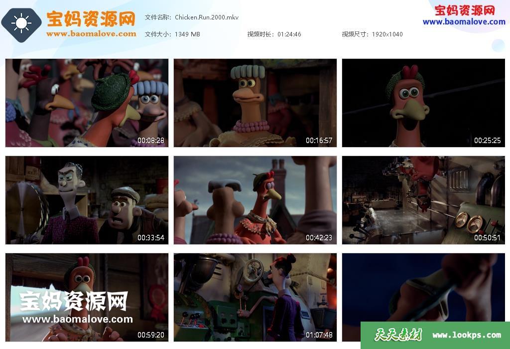 天天资源网收录的动画电影《小鸡快跑 Chicken Run》,英语发音,内置英文字幕(可以下载后使用播放器设置字幕字体大小颜色或者切换关闭字幕);资源大小约1.31G,1080P高清MKV视频格式,可以在电视机或电脑、平板、IPAD、早教机、手机等各种智能设备播放,提供百度云网盘下载。