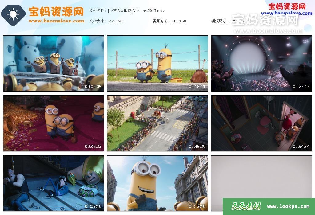 天天资源网收录的动画电影《小黄人大眼萌 Minions》,国粤台英四语发音,内置中英文字幕(可以下载后使用播放器选择设置字幕或者关闭字幕);资源大小约3.45G,720P高清MKV视频格式,可以在电视机或电脑、平板、IPAD、早教机、手机等各种设备播放,提供百度云网盘下载。