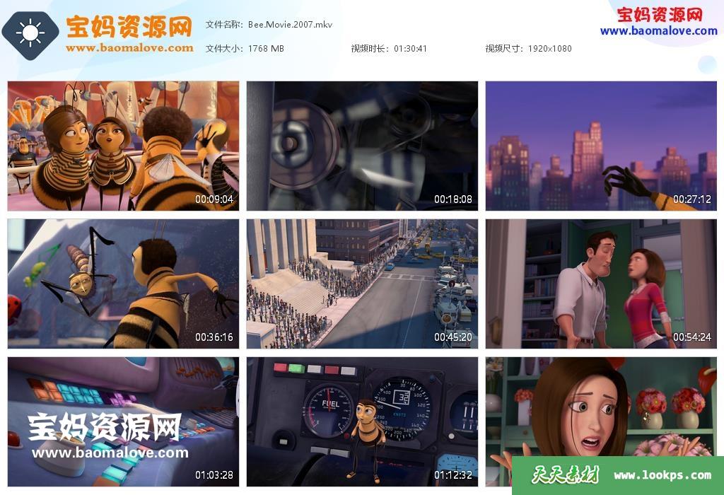 天天资源网收录的动画电影《蜜蜂总动员 Bee Movie》,英语发音,内置英文字幕(可以下载后使用播放器设置字幕字体大小颜色或者切换关闭字幕);资源大小约1.72G,1080P高清MKV视频格式,可以在电视机或电脑、平板、IPAD、早教机、手机等各种智能设备播放,提供百度云网盘下载。
