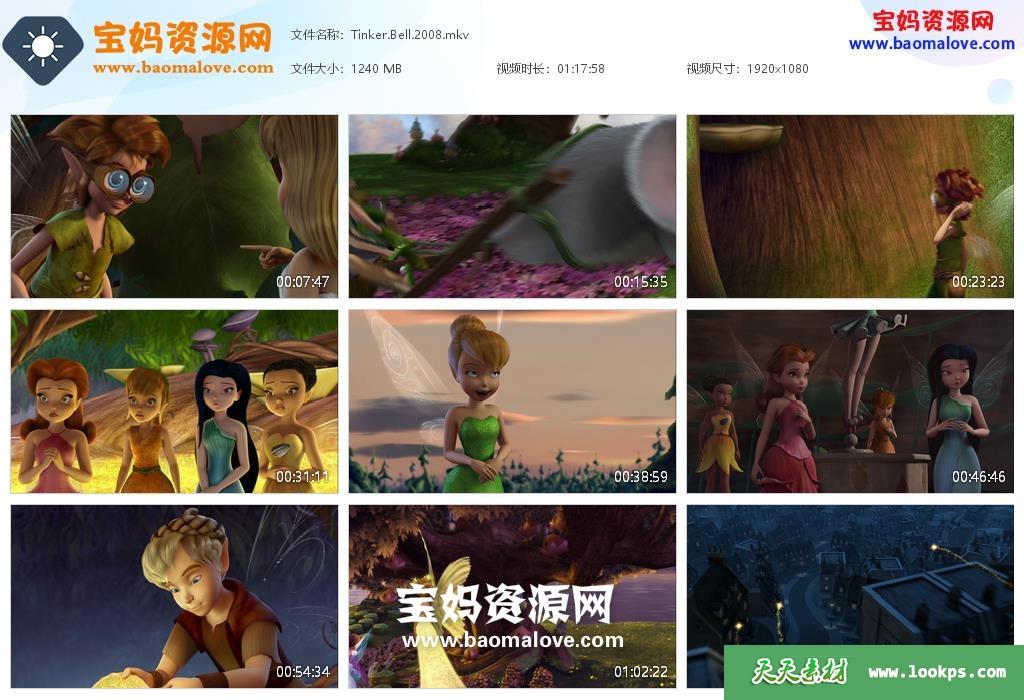 天天资源网收录的动画电影《小叮当 Tinker Bell》,英语发音,内置英文字幕(可以下载后使用播放器设置字幕字体大小颜色或者切换关闭字幕);资源大小约1.21G,1080P高清MKV视频格式,可以在电视机或电脑、平板、IPAD、早教机、手机等各种智能设备播放,提供百度云网盘下载。