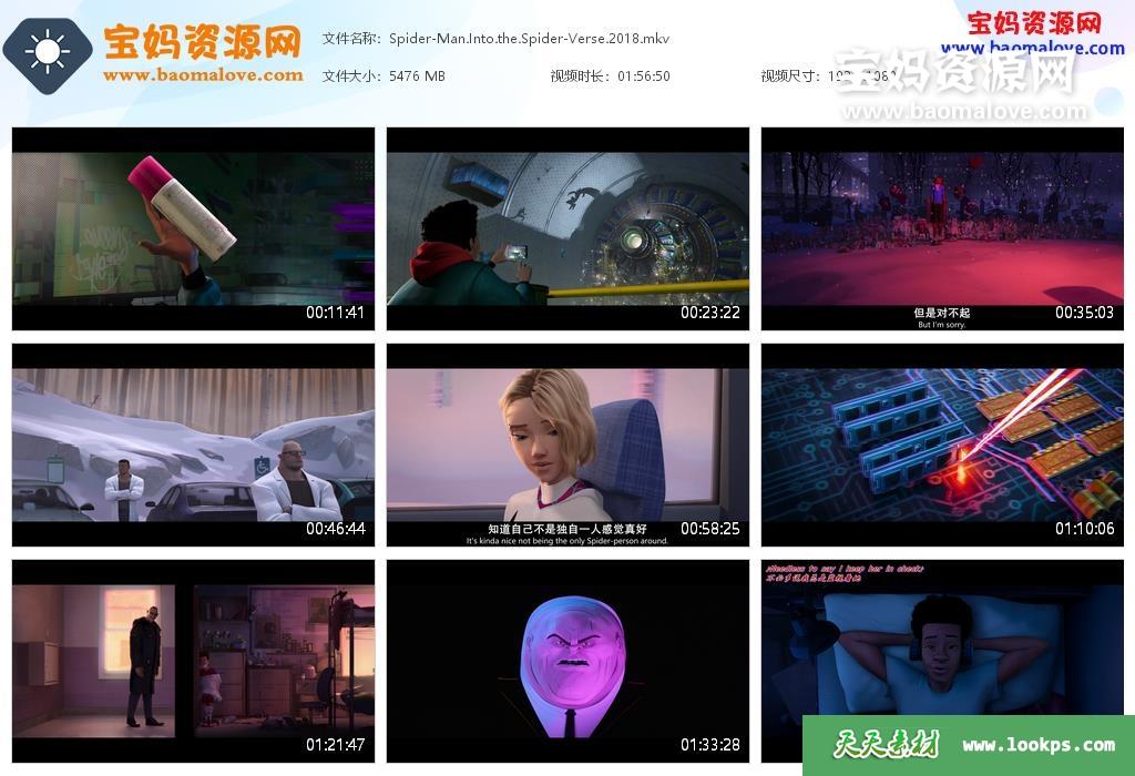 天天资源网收录的动画电影《蜘蛛侠:平行宇宙 Spider-Man: Into the Spider-Verse》,国英双语发音,中英文字幕;资源大小约5.34G,1080P高清MKV视频格式,可以在电视机或电脑、平板、IPAD、早教机、手机等各种设备播放,提供百度云网盘下载。