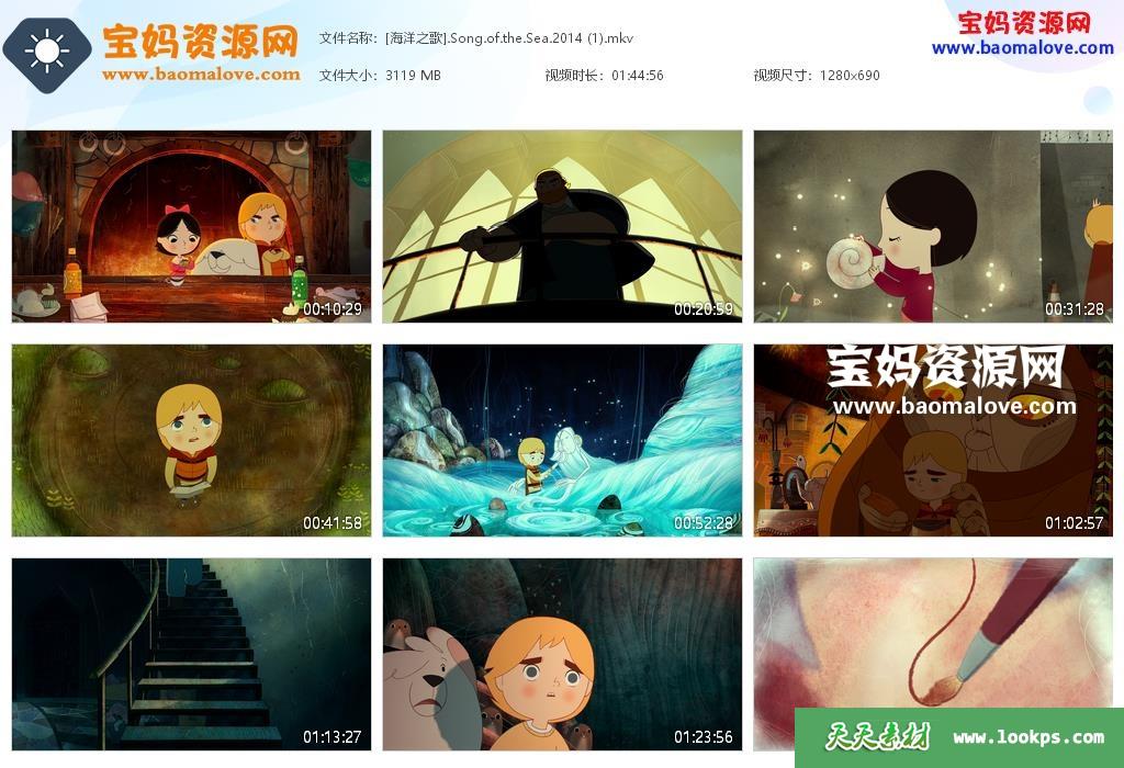 天天资源网收录的动画电影《海洋之歌 Song of the Sea》,英语发音,内置中英文字幕(可以下载后使用播放器设置字幕字体大小颜色或者切换关闭字幕);资源大小约3.04G,720P高清MKV视频格式,可以在电视机或电脑、平板、IPAD、早教机、手机等各种智能设备播放,提供百度云网盘下载。