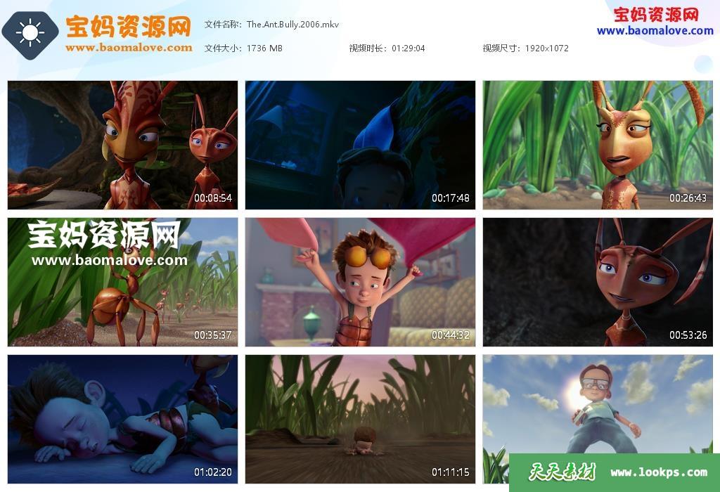 天天资源网收录的动画电影《别惹蚂蚁 The Ant Bully》,英语发音,内置英文字幕(可以下载后使用播放器设置字幕字体大小颜色或者切换关闭字幕);资源大小约1.69G,1080P高清MKV视频格式,可以在电视机或电脑、平板、IPAD、早教机、手机等各种智能设备播放,提供百度云网盘下载。