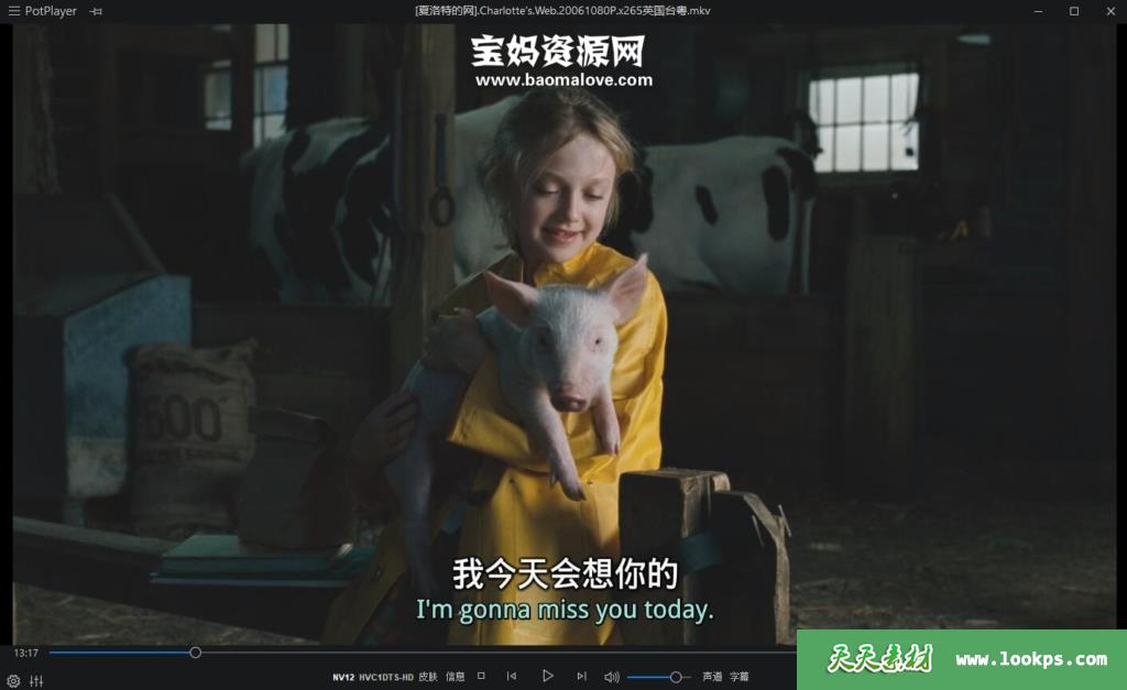 天天资源网收录的动画电影《夏洛特的网 Charlotte’s Web》,国粤台英四语发音,内置中英文字幕(可以下载后使用播放器选择设置字幕或者关闭字幕);资源大小约5.27G,1080P高清MKV视频格式,可以在电视机或电脑、平板、IPAD、早教机、手机等各种智能设备播放,提供百度云网盘下载。