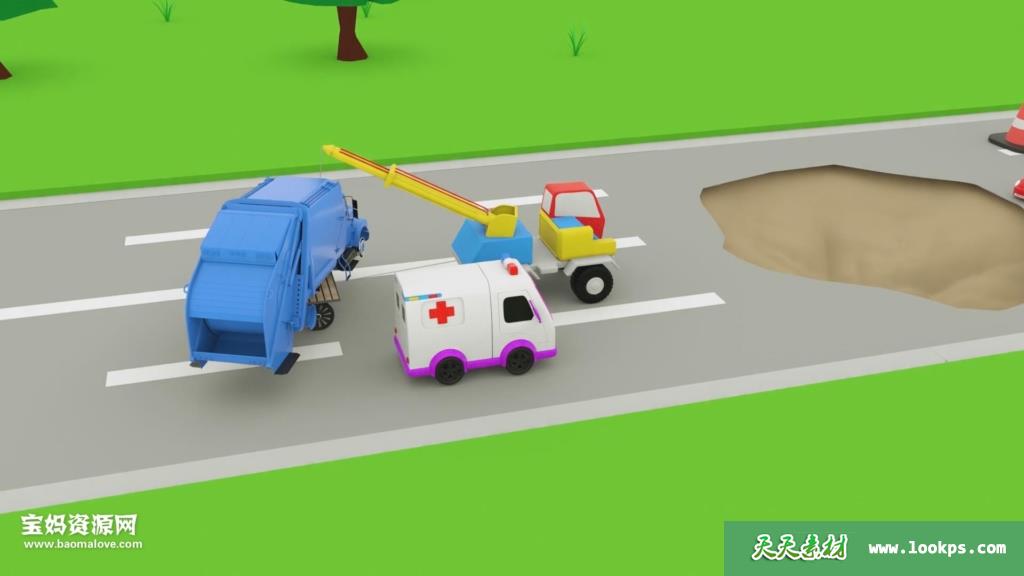 43. 工程队小汽车营救滑滑板被困的汽车宝贝