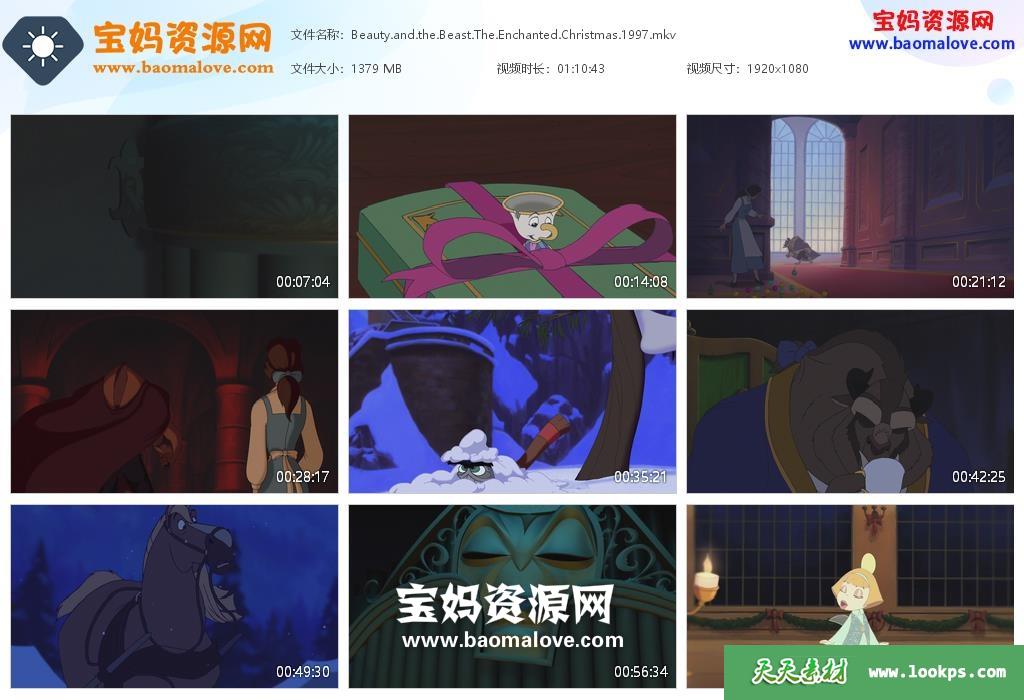 天天资源网收录的动画电影《美女与野兽之贝儿的心愿 Beauty and the Beast: The Enchanted Christmas》,英语发音,内置英文字幕(可以下载后使用播放器设置字幕字体大小颜色或者切换关闭字幕);资源大小约1.34G,1080P高清MKV视频格式,可以在电视机或电脑、平板、IPAD、早教机、手机等各种智能设备播放,提供百度云网盘下载。