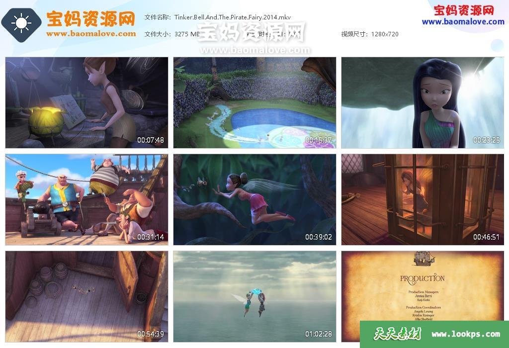 天天资源网收录的动画电影《小叮当与海盗仙子 The Pirate Fairy》,国英双语发音,内置中英文字幕(可以下载后使用播放器选择设置字幕或者关闭字幕);资源大小约3.19G,720P高清MKV视频格式,可以在电视机或电脑、平板、IPAD、早教机、手机等各种设备播放,提供百度云网盘下载。