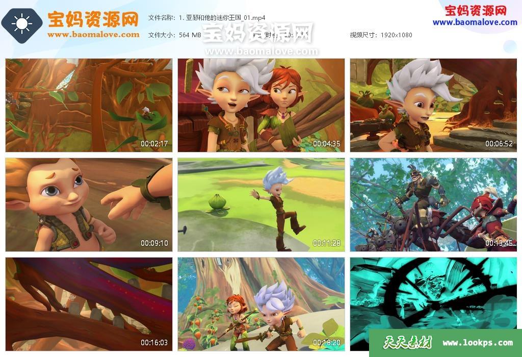 天天资源网收录的动画片《Arthur and the Minimoys》亚瑟与他的迷你王国英文版 第一季,全部26集,英语发音,无字幕;资源总大小9.22G,单集播放时长约23分钟,1080P高清MP4视频格式,可以在电视机或电脑、平板、IPAD、早教机、手机等各种智能设备播放,提供百度云网盘下载。