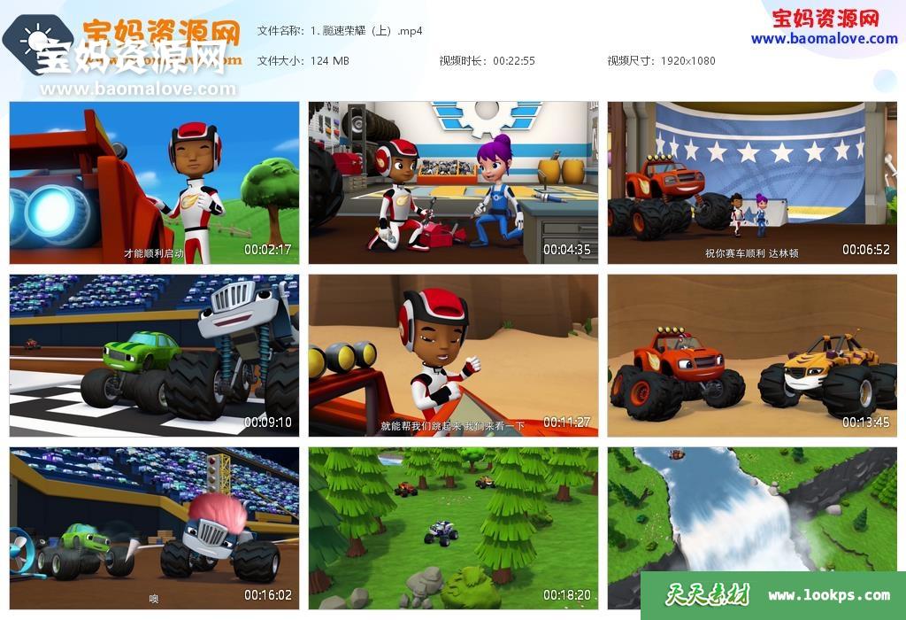 天天资源网收录的动画片《旋风战车队》Blaze and the Monster Machines中文版 第一季,全部20集,国语发音,中文字幕;资源总大小约2.51G,单集播放时长约22分钟,1080P高清MP4视频格式,可以在电视机或电脑、平板、IPAD、早教机、手机等各种设备播放,提供百度云网盘下载。